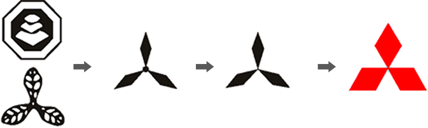 Символ компании Mitsubishi Heavy Industries, Ltd. «Три бриллианта» возник на основе символа корабельного флага, который праотец компании Цукумо Сёкай принял, когда она начала заниматься судоходным бизнесом. Этот символ представляет собой трансформированную версию семейной эмблемы Ятаро Ивасаки, основателя компании Mitsubishi.