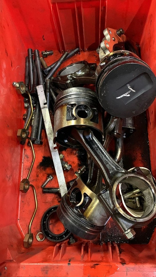 Для выявления неполадок силовой агрегат тестируется на компьютерном стенде. Считываются и расшифровываются ошибки, определяется методика устранения неисправностей. Если предстоит капитальный ремонт двигателя, он демонтируется с погрузчика. Далее мотор разбирается на запчасти, проводится дефектовка, выявляются детали, подлежащие замене. Часто к ним относятся: