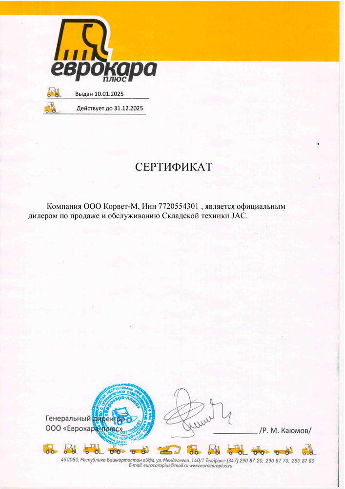 Минимальная гарантия на новые погрузчики и штабелеры составляет 12 мес или 2000 м/ч
